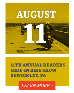 SEWICKLEY, PENN. - AUG 11 A couple of miles upstream from Pittsburgh on the Ohio River is the motorcycle-friendly town of Sewickley, Pennsylvania - site of this year's Café Racer Magazine's Ride-in Show. $30,000 in prizes and trophies will be awarded.